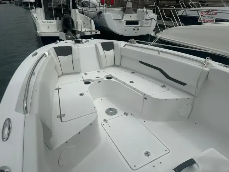 Whatever your passion: luxury fishing, family boating, or offshore cruising, the 242F embraces it all. Powered by single or dual applications, this 24'4" vessel delivers the length and muscle fishermen need when heading offshore—a textbook ride only possible through a high freeboard, deep hull, and an articulated bow flare.